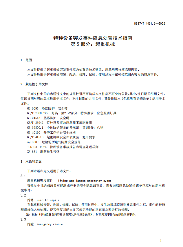 特种设备突发事件应急处置技术指南+第5部分:起重机械_地方标准